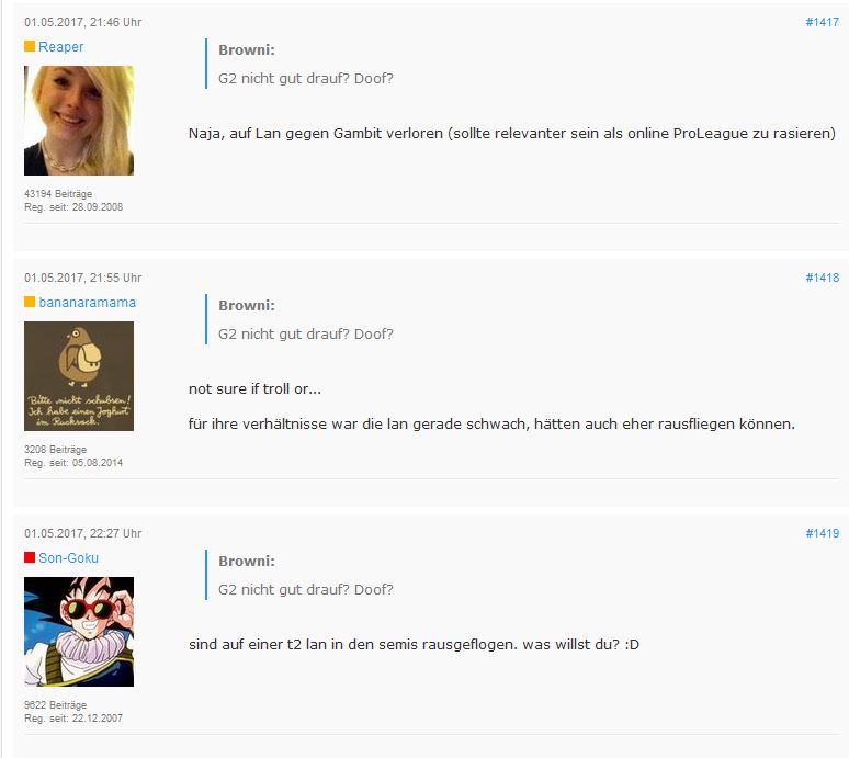 ich weiß nicht ob du gut trollst oder einfach nur dumm bist. lies dir evtl noch mal durch was geschrieben wurde und was selbst die jungs von g2 sagten. bin mir sicher, du verstehst es dann auch.Zitat von BrowniHast dich wohl im Forum geirrt WC3 BubiZitat von ToMwillst noch viel deutlicher machen, dass du absolut keinen plan von dem spiel hast?Zitat von Browni