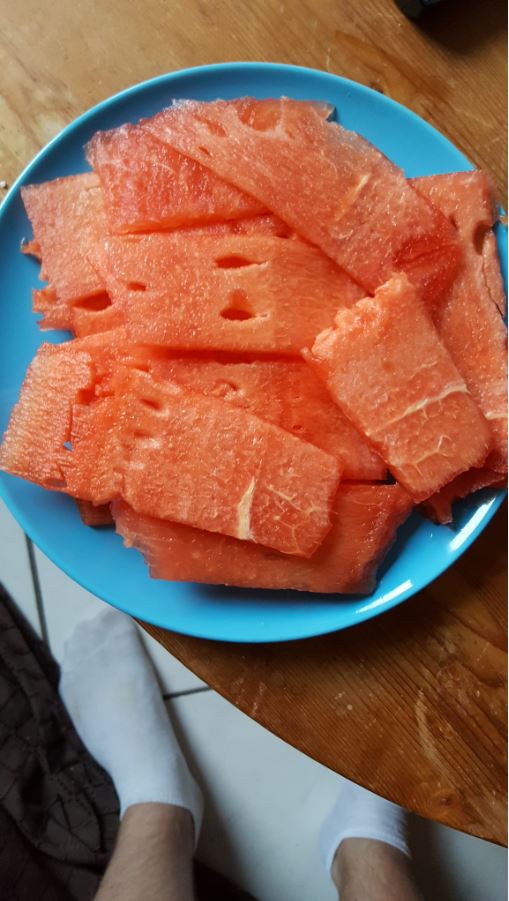 bei diesem wetter erstmal ne kleine 17kg melone gegön_Nt und mit meinen japanischen sushimeistermesserskills kernlos zerteilt (zmd. das erste zehntel)