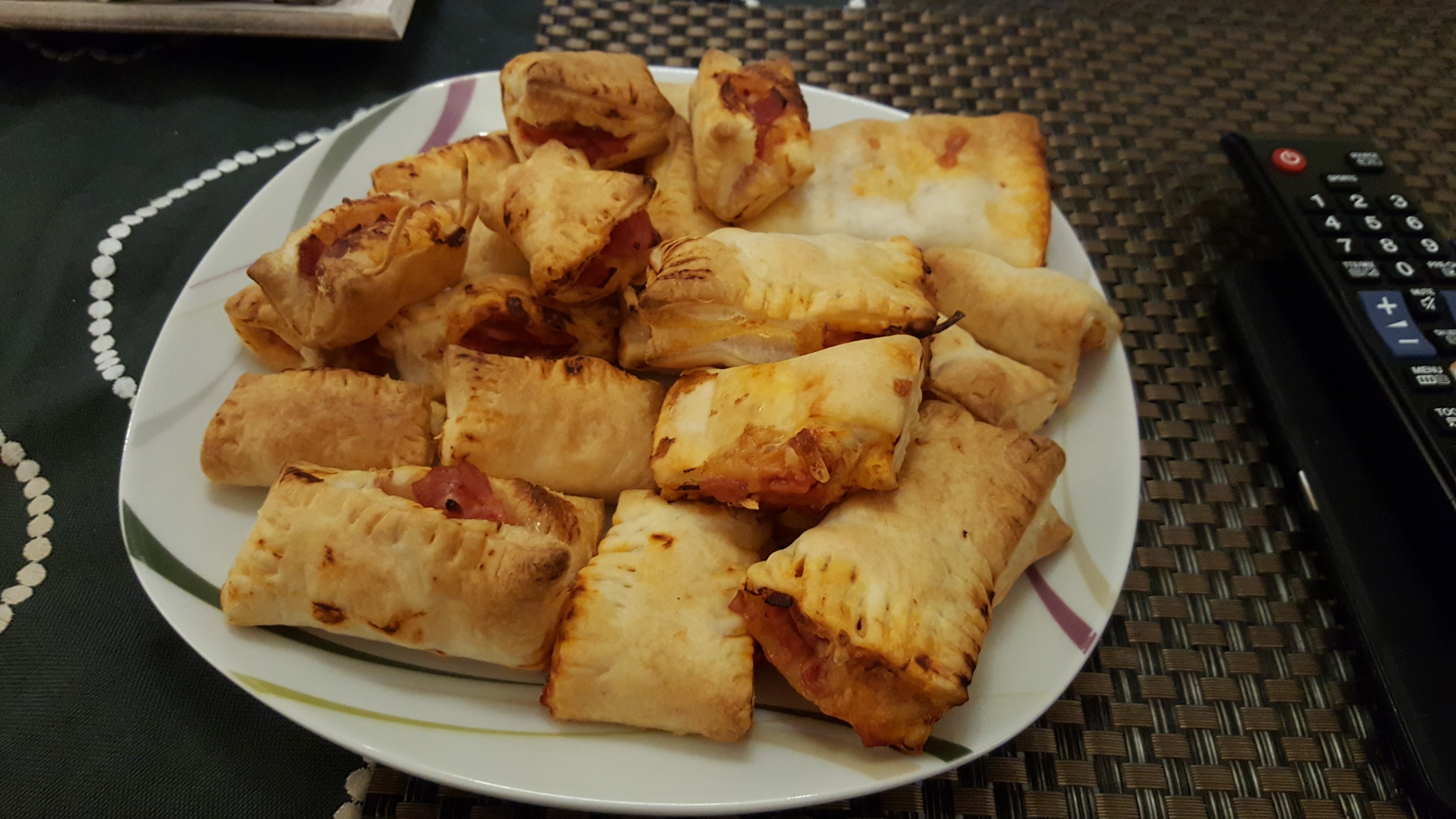 Gestern gab es selbstgemachte gefüllte Pizzabrötchen in Blätterteig....