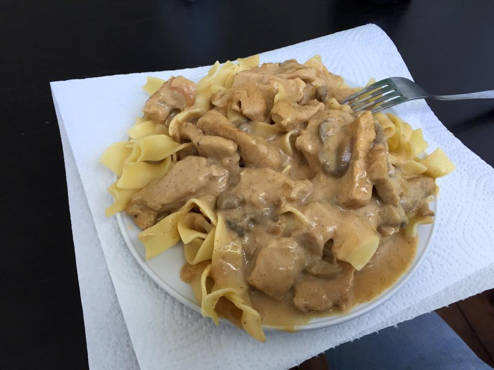 gestern Abend noch schnell was für die heutige Mittagspause gemacht. pute, Pilze, bisschen soße, lieblingsnudeln = win