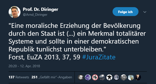 Hat man nicht bei Höcke oder vor kurzem in meiner Heimatstadt bei der Essener Tafel gelernt was sonst passiert? Man kommt schließlich näher zur Selbstjustiz wenn man nur noch einen feuchten Furz auf die rechstaatliche Entscheidungen gibt.