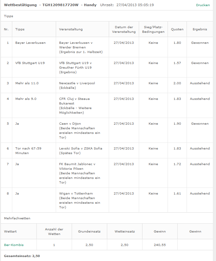 vor allem hat 2,40 sicher keinen value mehr, außer man geht von nem fixed game aus