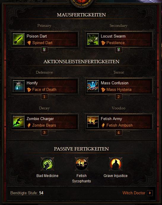 hab mit meinem schlechten gear hölle eigentlich als solospieler schon fast aufgegeben aber so komm ich wenigstens etwas vorran. ich hab nur riesen probleme wenn ich in irgendwelchen kanälen auf elite/champions treffe...da sterb ich am fließband :/Zitat von b-O-n-EIch habe auch einen [witchdoctor] auf Stufe 54 und spiele ihn so: