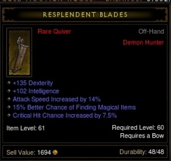 Was kann der so bringen? DPS ist solide, Critdam gut und ein wenig von allem. Im Gold-AH gibts gerade nichts vergleichbares. Im RMAH ist der ähnlichste für 240 (Wucher) drinne.
