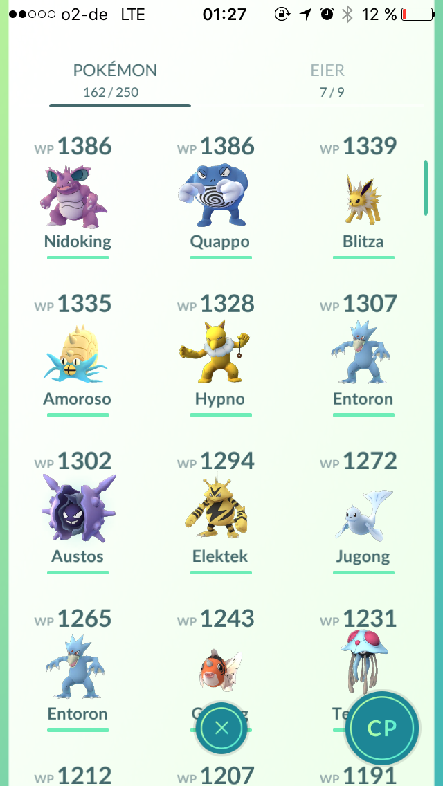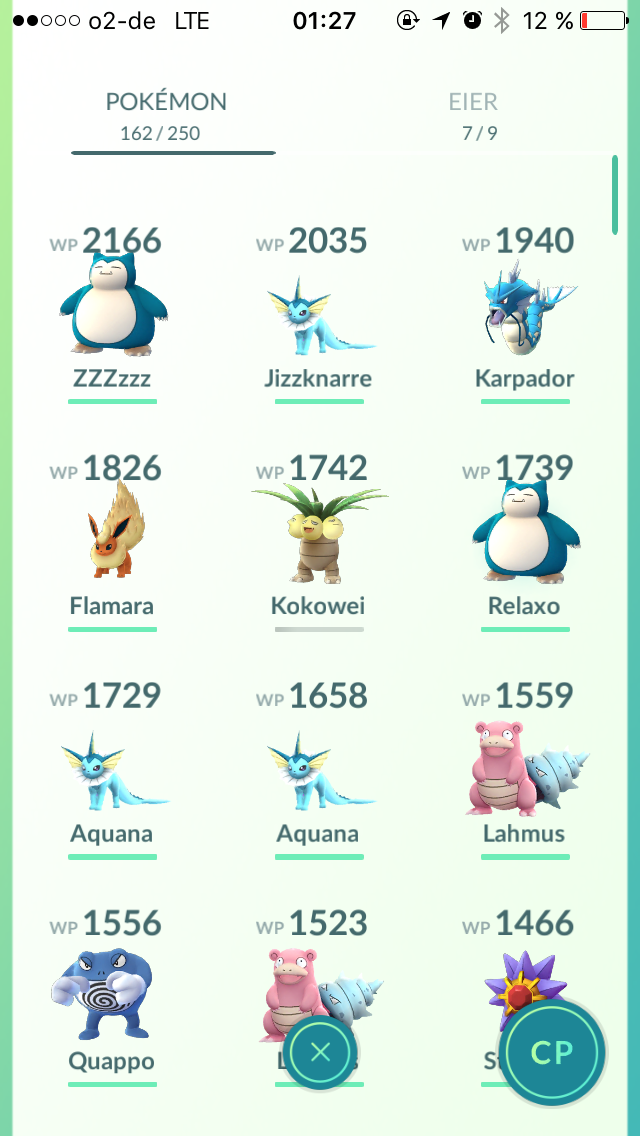 owei hab ich bisher nur einmal ausm ei bekommen, bis heute noch nie gesehn auf der nearby liste. und für garados brauch ich noch 16 bonbons yeah :D