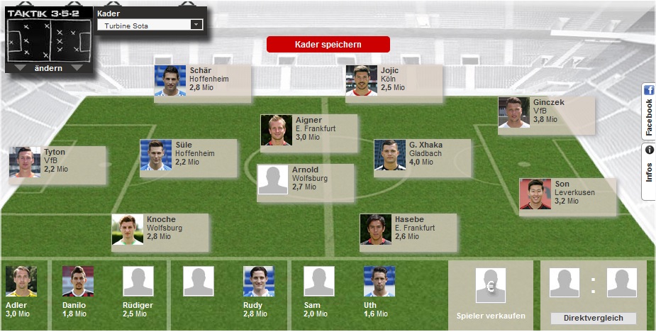 viel zu viel geld auf der Bank rumsitzenZitat von scarfixSpoiler:Bin soweit fertig, erhoffe mir nicht all zu viel :D Kann das ganz schlecht einschätzen. Aufstellung/Formation bin ich mir auch noch unsicher. Mal sehen.