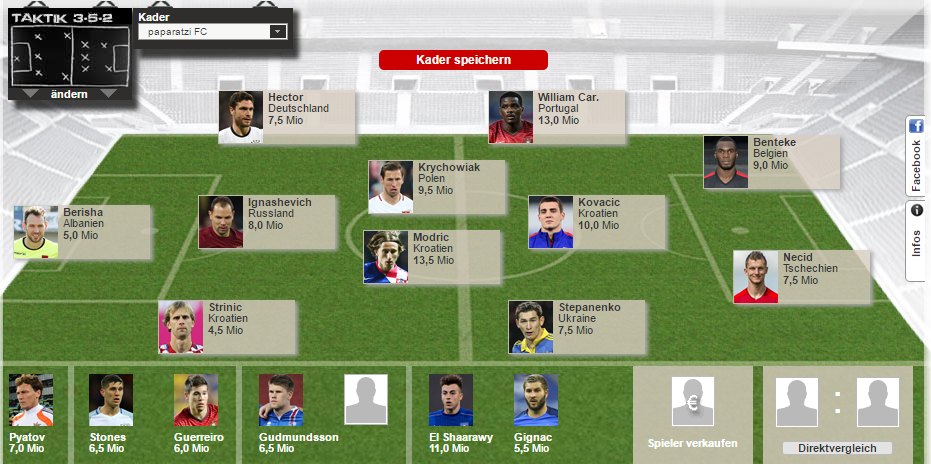 profitierst von yarmolenko und deiner starken abwehr...mittelfeld find ich eher dünnZitat von GeoSCHSo bei mir steht nun auch alles, Nani leider nicht bekommen, aber mein Mittelmaß sollte aber reichen