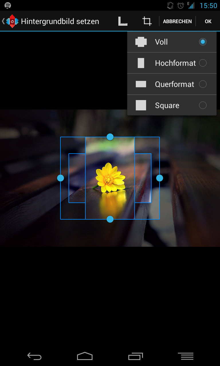 da musst du das crop nehmen und kannst dann zwischen Voll, Hochformat, Querformat und Square auswählen