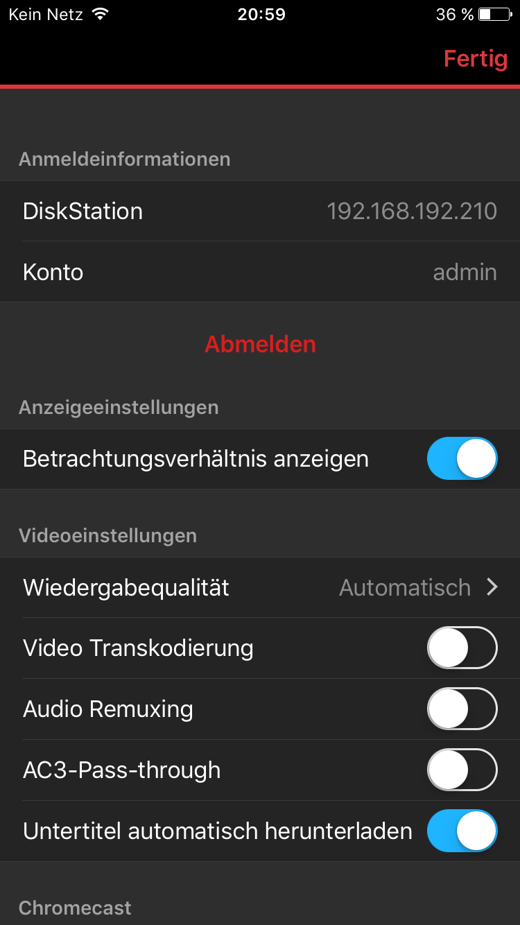 Jetzt würde ich gerne meine MKV Videos/Serien in meiner Apple Umgebung verwenden, vorhanden ist ein AppleTV3, iPhone, iPad. Obwohl bei Synology ja überall die Transkodierfunktion angepriesen wird, scheine ich mein Material mit der DS Video App nicht zum laufen zu bringen. Mit anderen Playern funktioniert es allerdings. Ziel wäre on the fly oder über ein anderes iOS Gerät per AirPlay an den Apple TV zu streamen.