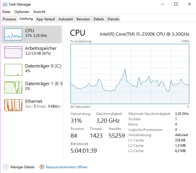 während solch einer Situation, ich sehe zwar als Laie dass der Arbeitsspeicher sehr ausgelastet ist aber eigentlich sind 4GB doch für diese Anwendungen mehr als ausreichend oder?! Ich hatte sowieso vor mir in nächster Zeit neue Hardware zu kaufen aber trotzdem wunder ich mich, dass ich mit der Hardware solche Probleme habe.