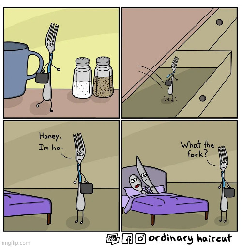 An dieser Stelle ein Gedanke, der mich schon seit langer Zeit beschäftigt: Löffel und Gabel haben noch nie zusammengepasst, ebensowenig Löffel und Messer. Messer und Gabel ist die einzige natürliche Kombination. Sieht man auch am Bild.